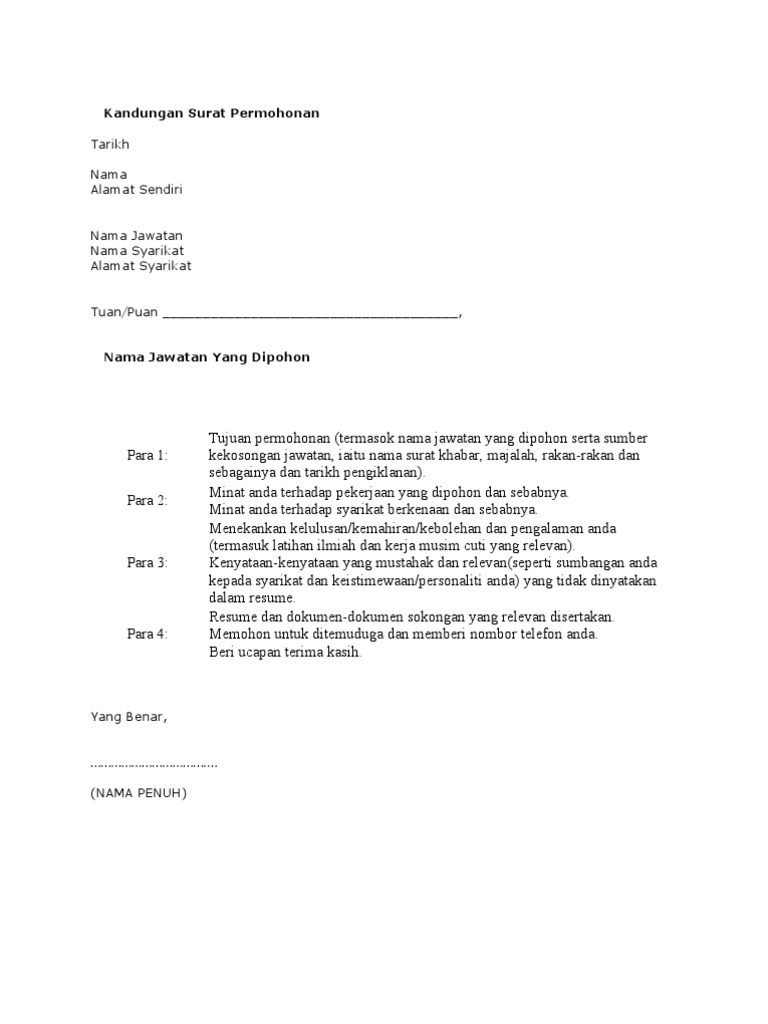 Contoh Surat Memohon Jawatan Kosong Pdf